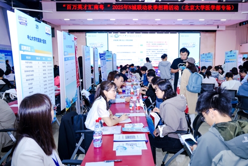2025年9月24日,“百万英才汇南粤”2025年N城联动秋季招聘活动(北京大学医学部专场)在北京大学医学部顺利开展。本次活动是广东省深入实施“百万英才汇南粤”行动计划、推进“百校聚南粤”精准引才策略池的重要一环,旨在通过省市区联动、精准对接策略池,为粤港澳大湾区医疗卫生事业引进更多高水平医学人才。