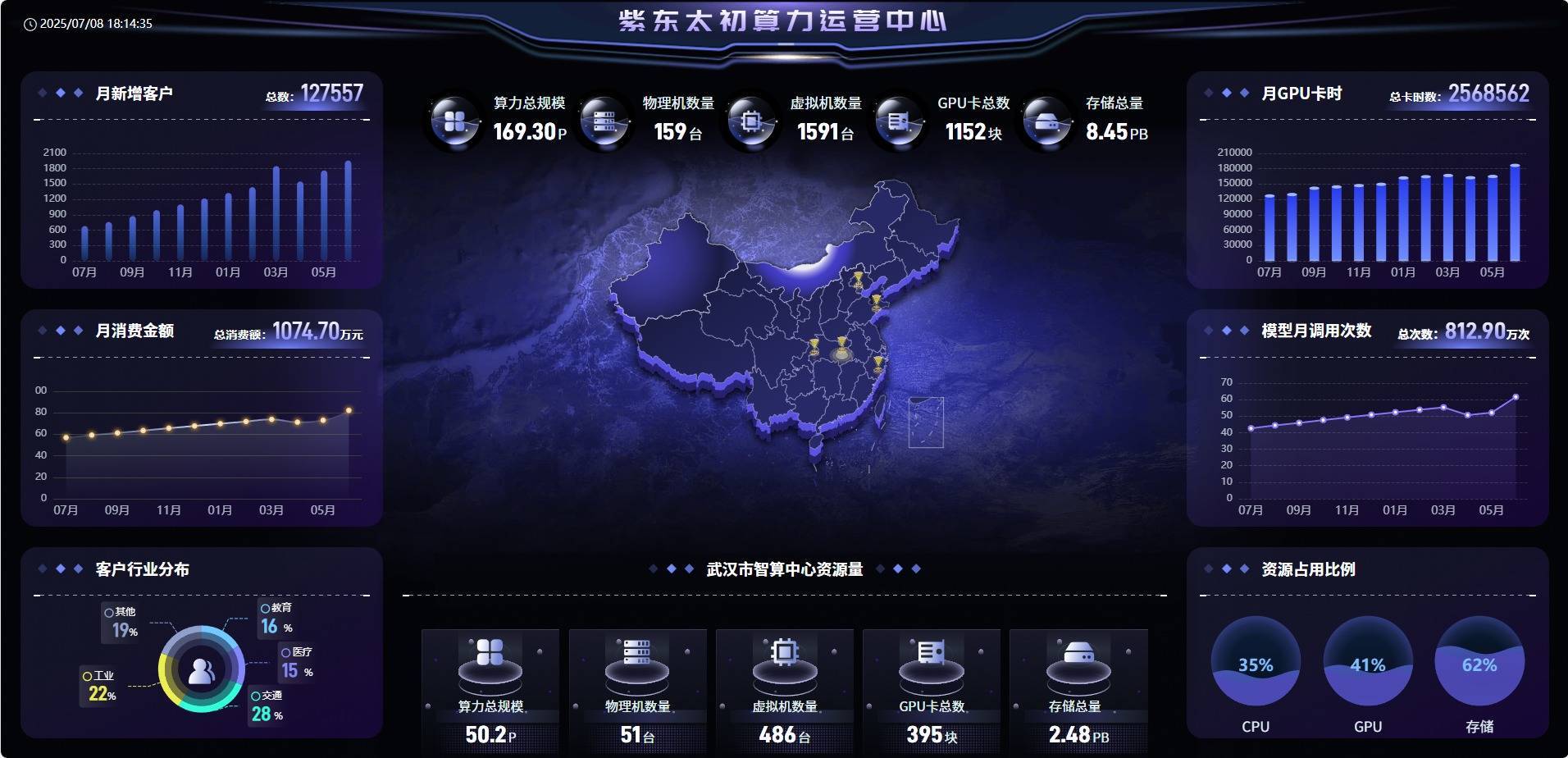 在武汉人工智能研究院展厅,“紫东太初云”平台的实时数据面板上,超百个应用场景的动态数据不断刷新。这个国内首个全栈国产化万卡智算云,正让AI 技术加速渗透到产业肌理。