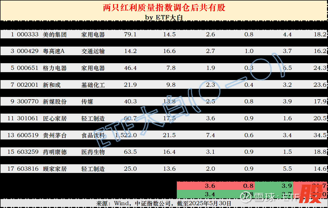 根据中证的数据,它们共同持有 18只股票,堪称“王中王”。有趣的是,里面还有一只北交所的股票——同力股份,它竟然同时是中证红利指数的成分股!值得深入研究